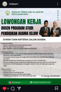 STIQ Kepri membuka kesempatan bagi Anda yang berkompeten dan berdedikasi tinggi untuk bergabung sebagai Dosen Tetap Program Studi Pendidikan Agama Islam.