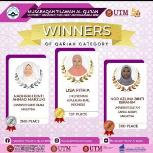 Selamat buat mahasiswa STIQ KEPRI LISA FITRIA yang telah berhasil meraih kejuaraan internasional, dan menempati posisi Juara 1 (satu).