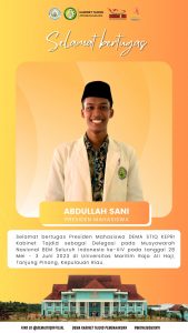 Kami Ucapkan Selamat Bertugas kepada Abdullah Sani selaku Presiden Mahasiswa STIQ KEPRI Kabinet Tajdid sebagai Delegasi dari Sekolah Tinggi Ilmu Al Qur’an Kepulauan Riau dalam kegiatan Musyawarah Nasional ke – XVI.